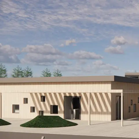 Facaderne bliver beklædt med thermomodificeret fyr med udvendige døre og vinduer i pulverlakeret aluminium i en granitgrå farve. De indvendige karme i lakeret fyr vil markere sig i institutionens rum og skaber en flot overgang mellem vægge og vinduespartier.